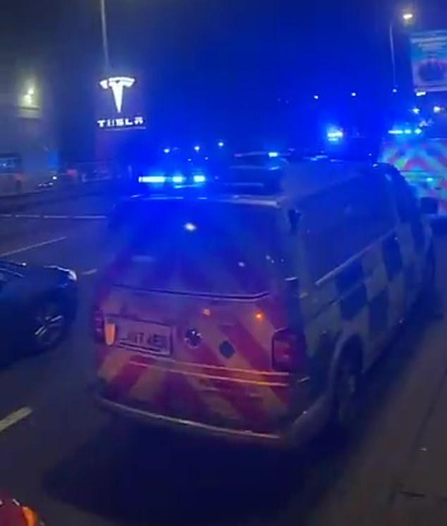 ‘A female, who is believed to have been with the stationary Tesla, was treated for injuries that have been assessed as non life-threatening.